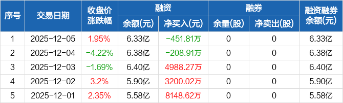 信测标准:融资净偿还451.81万元,融资余额6.33亿元(12-05)
