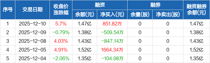 秋田微:融资净买入851.82万元,融资余额1.47亿元(12-10)