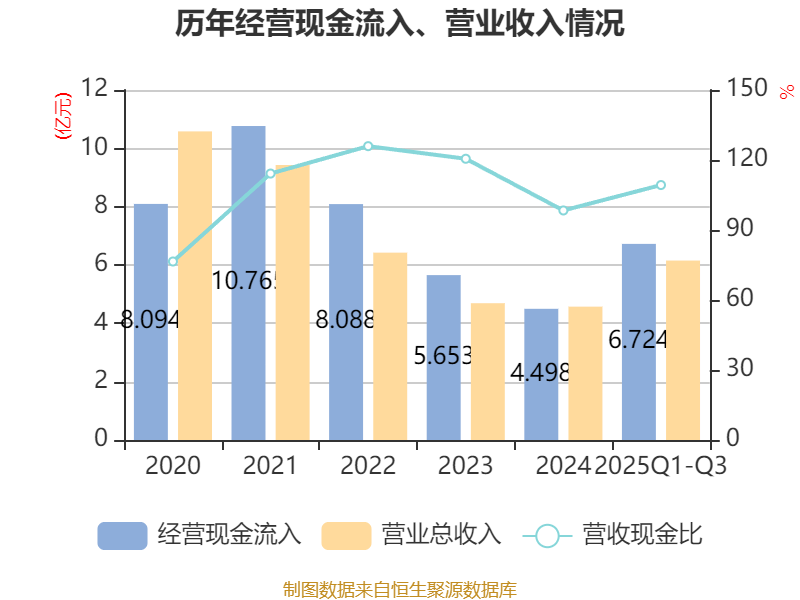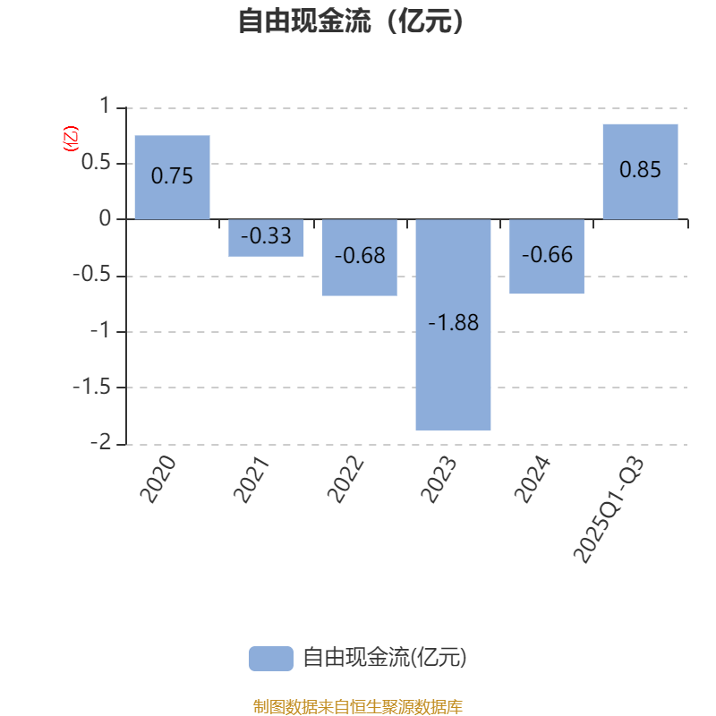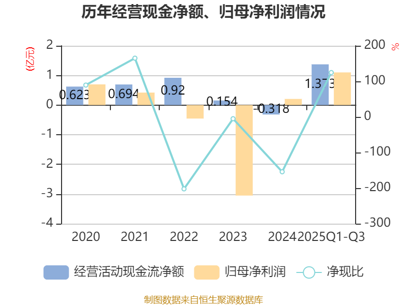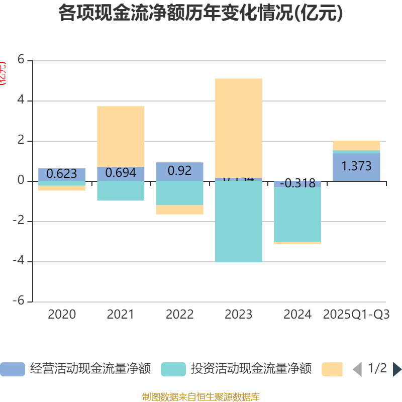 2025年前三季度,公司经营活动现金流净额为1.37亿元,同比增加1.68亿元;筹资活动现金流净额4808.77万元,同比增加6070.05万元;投资活动现金流净额1500.78万元,上年同期为-2.85亿元。