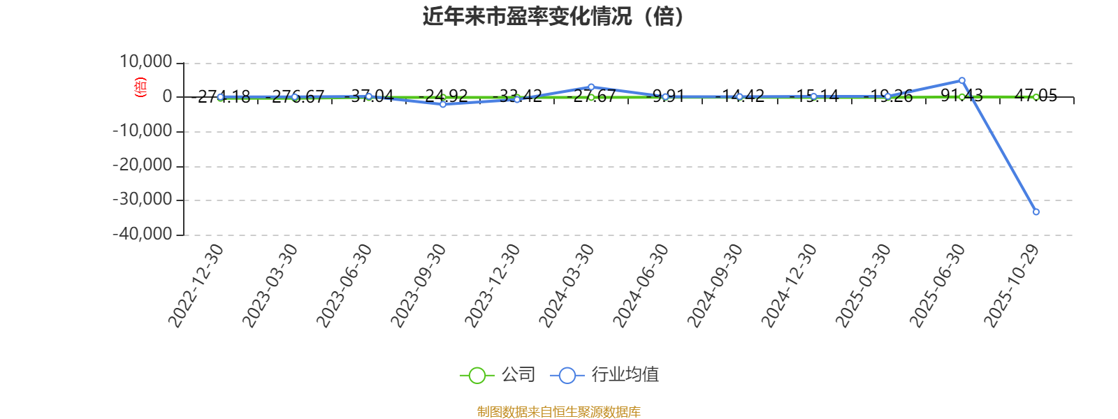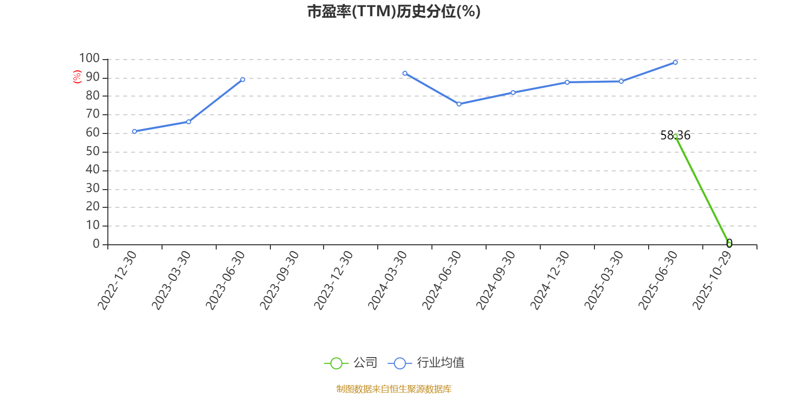 市盈率、市净率为负时,不显示当期分位数,会导致折线图中断。
