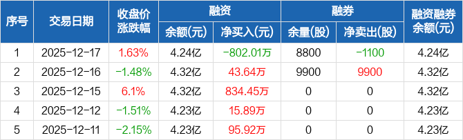 南极光:融资净偿还802.01万元,融资余额4.24亿元(12-17)