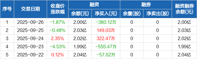 创识科技:融资净偿还380.12万元,融资余额2亿元(09-26)