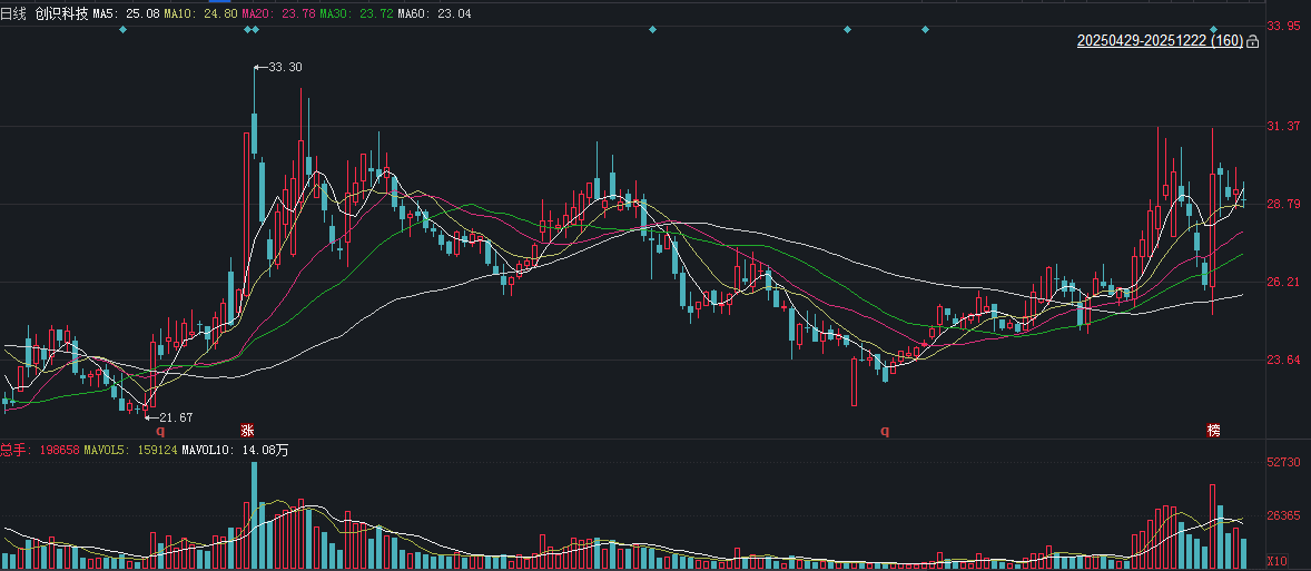 二级市场上,截至12月22日收盘,创识科技下跌1.30%报28.87元/股,总市值约59.11亿元,今年来公司股价近乎“原地踏步”。