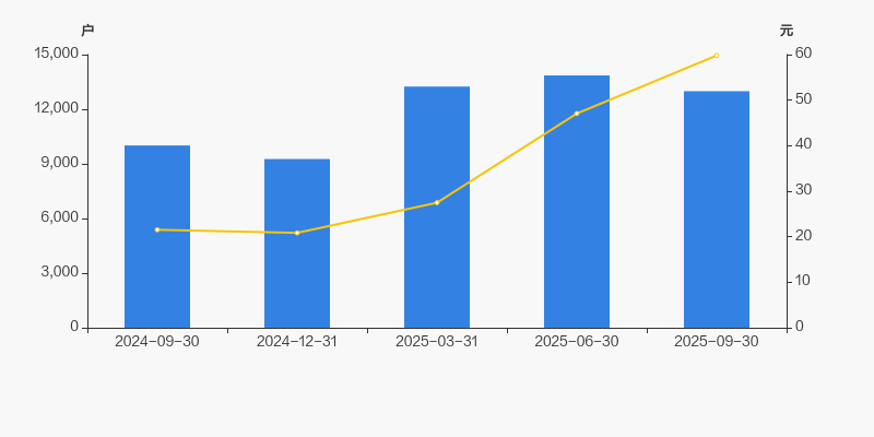 截至2025年9月30日,公司最新总股本为1.56亿股,其中流通股本为7580.43万股。户均持有流通股数量由上期的5471股上升至5835股,户均流通市值34.89万元。