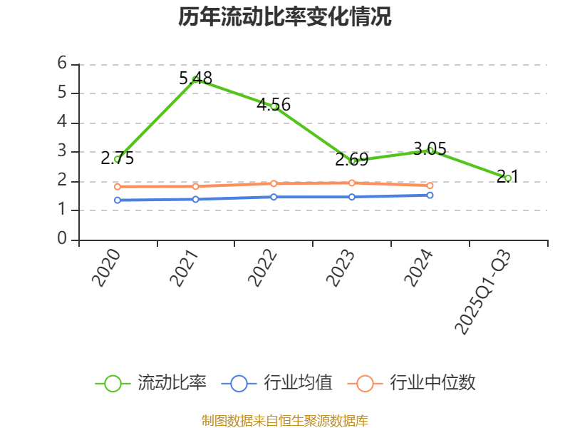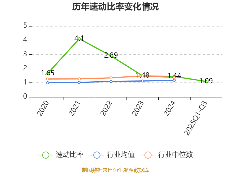 2025年前三季度,公司流动比率为2.1,速动比率为1.09。