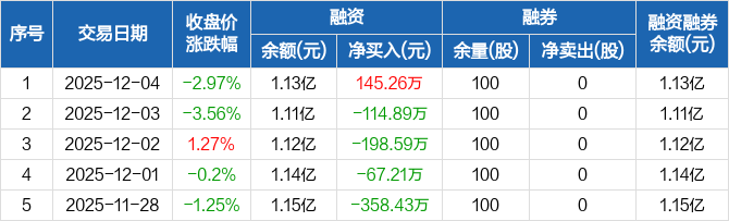 德必集团:融资净买入145.26万元,融资余额1.13亿元(12-04)