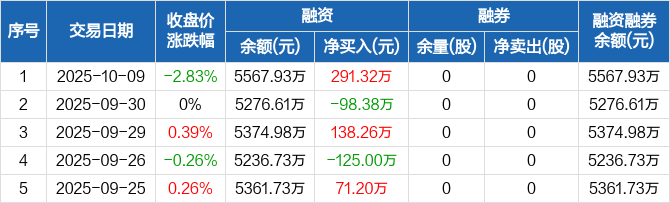 奥雅股份:融资净买入291.32万元,融资余额5567.93万元(10-09)