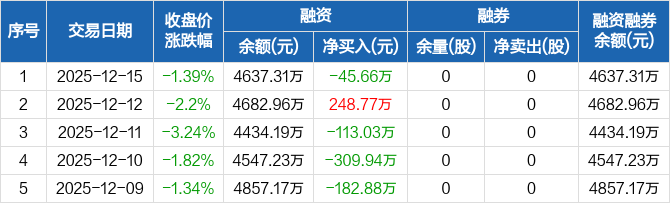 奥雅股份:融资净偿还45.66万元,融资余额4637.31万元(12-15)