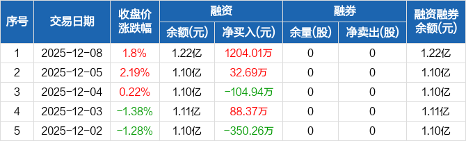 德固特:融资净买入1204.01万元,融资余额1.22亿元(12-08)