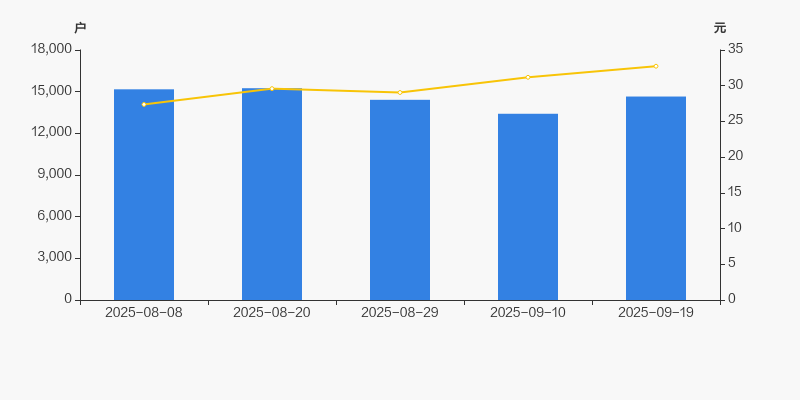 2025年8月8日至今,公司股东户数有所下降,区间跌幅为3.42%。2025年8月8日至2025年9月19日区间股价上涨19.54%。