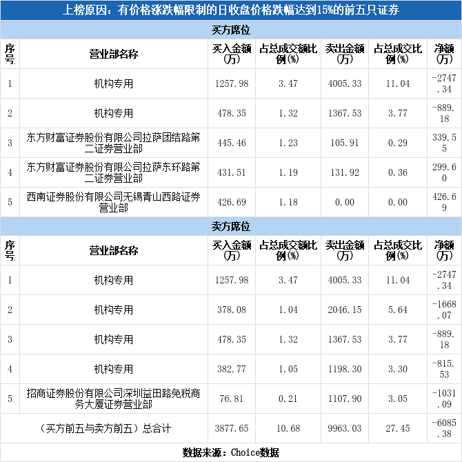 多主力现身龙虎榜,嘉亨家化下跌15.70%(10-13)