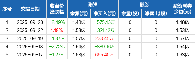 英力股份:融资净偿还575.13万元,融资余额1.48亿元(09-23)