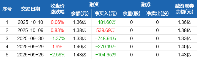 英力股份:融资净偿还181.6万元,融资余额1.36亿元(10-10)