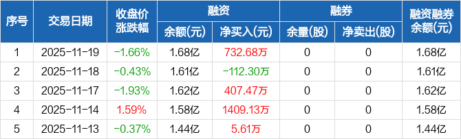 英力股份:融资净买入732.68万元,融资余额1.68亿元(11-19)