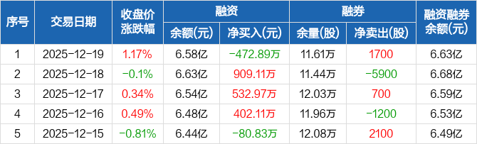 贝泰妮:融资净偿还472.89万元,融资余额6.58亿元(12-19)
