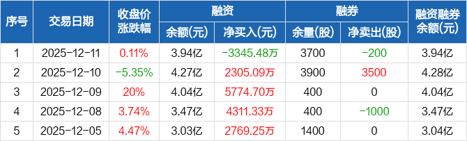 线上线下:融资净偿还3345.48万元,融资余额3.94亿元(12-11)