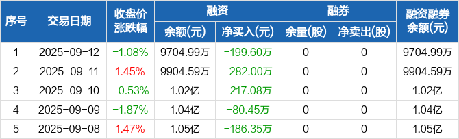 通业科技:连续5日融资净偿还累计965.49万元(09-12)