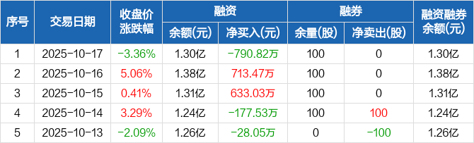 深水海纳:融资净偿还790.82万元,融资余额1.3亿元(10-17)