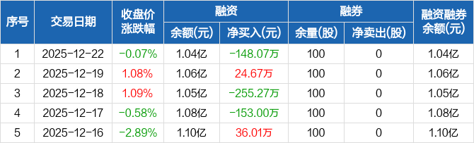深水海纳:融资净偿还148.07万元,融资余额1.04亿元(12-22)