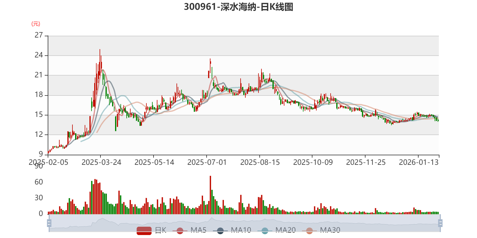 中证智能财讯深水海纳(300961)1月29日晚间披露2025年度业绩预告,预计2025年归母净利润亏损1.38亿元至2.59亿元,上年同期亏损2.47亿元;扣非净利润亏损1.32亿元至2.49亿元,上年同期亏损1.9亿元。以最新收盘价计算,市净率(LF)约3.43倍,市销率(TTM)约7.73倍。
