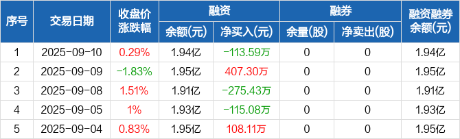 中金辐照:融资净偿还113.59万元,融资余额1.94亿元(09-10)