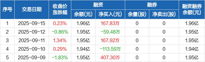 中金辐照:融资净买入167.83万元,融资余额1.96亿元(09-15)