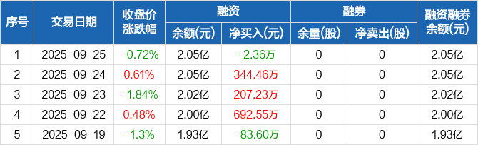 中金辐照:融资净偿还2.36万元,融资余额2.05亿元(09-25)