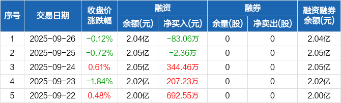 中金辐照:融资净偿还83.06万元,融资余额2.04亿元(09-26)