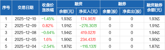 中金辐照:融资净买入174.9万元,融资余额1.93亿元(12-10)