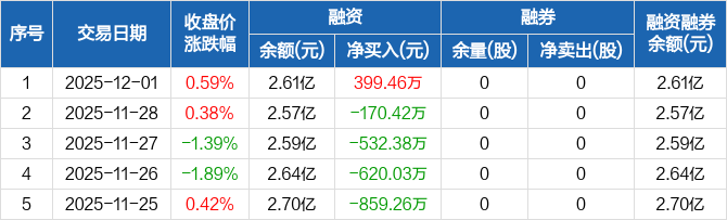中洲特材:融资净买入399.46万元,融资余额2.61亿元(12-01)
