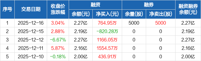 本川智能:融资净买入764.95万元,融资余额2.27亿元(12-16)