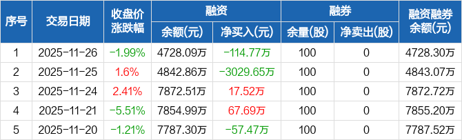 共同药业:融资净偿还114.77万元,融资余额4728.09万元(11-26)
