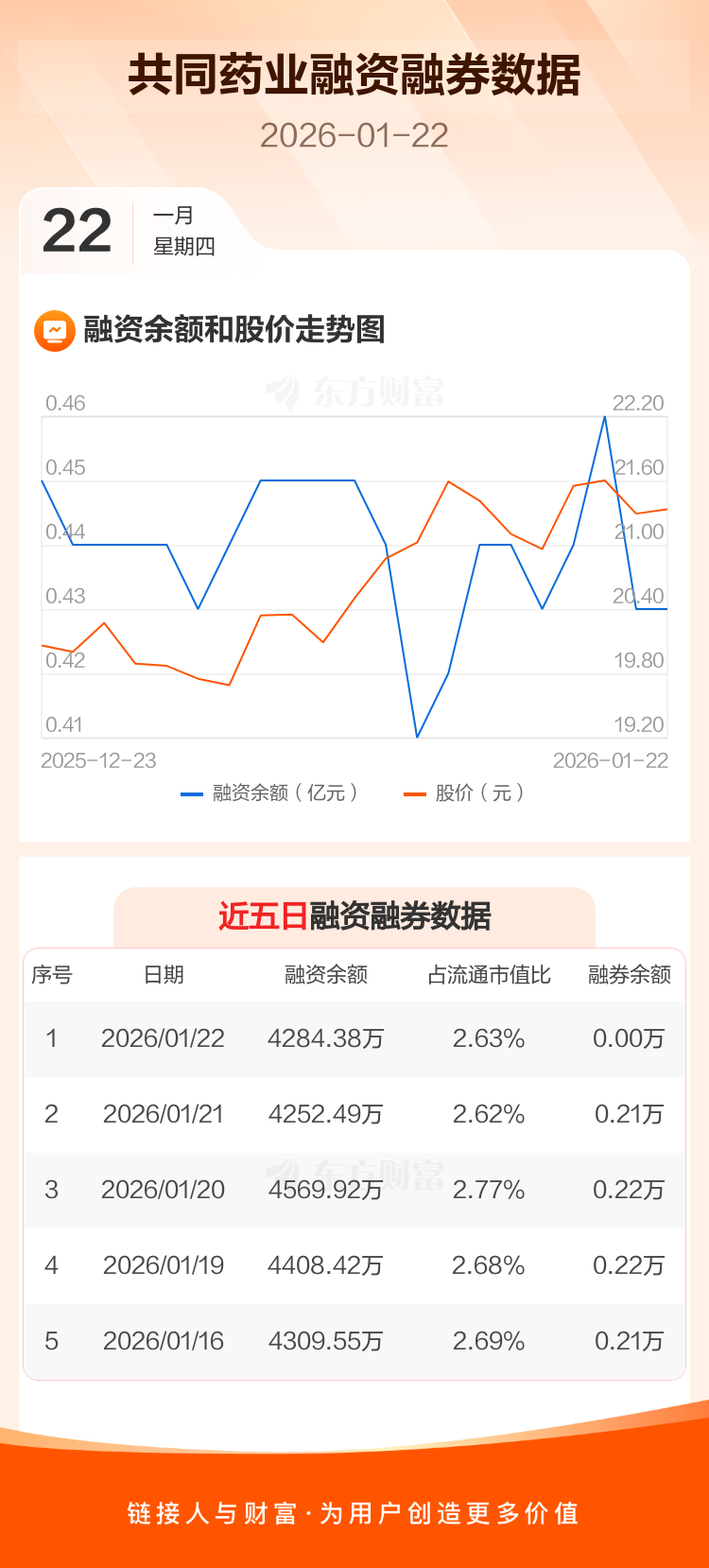 交易所最新数据显示,共同药业于2026年1月22日获融资买入232.27万元,融资偿还200.38万元,当日融资净买入31.89万元。目前,该股融资余额4284.38万,占流通市值比例为2.63%。