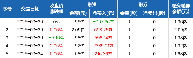 格林精密:融资净偿还907.36万元,融资余额1.96亿元(09-30)