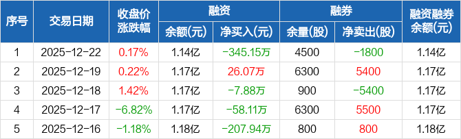 博亚精工:融资净偿还345.15万元,融资余额1.14亿元(12-22)