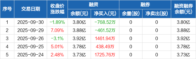 达瑞电子:融资净偿还768.52万元,融资余额3.8亿元(09-30)