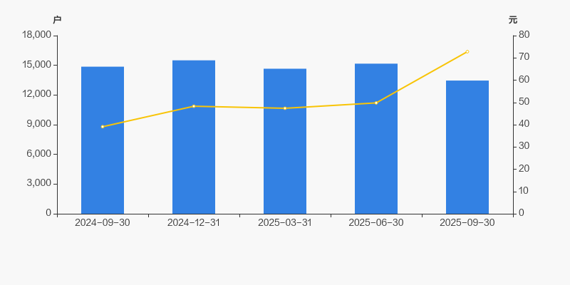截至2025年9月30日,公司最新总股本为1.33亿股,其中流通股本为8521万股。户均持有流通股数量由上期的5618股上升至6332股,户均流通市值46.09万元。
