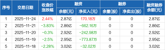 达瑞电子:融资净买入170.18万元,融资余额2.87亿元(11-24)
