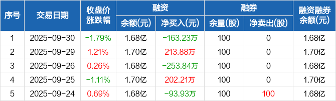 东箭科技:融资净偿还163.23万元,融资余额1.68亿元(09-30)