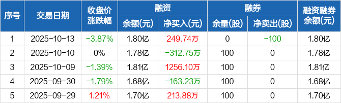 东箭科技:融资净买入249.74万元,融资余额1.8亿元(10-13)