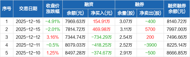 华利集团:融资净买入154.91万元,融资余额7969.63万元(12-16)