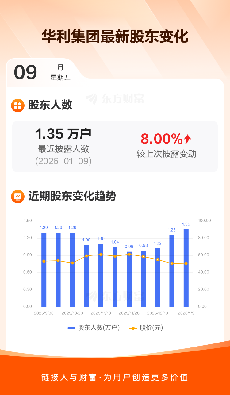 华利集团:截至1月9日最新股东户数1.35万户,较上期增加8.00%