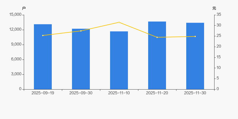 截至2025年11月30日,公司最新总股本为1.38亿股,其中流通股本为9834.14万股。户均持有流通股数量由上期的7201股上升至7336股,户均流通市值18.23万元。