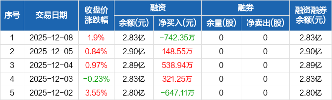 祥源新材:融资净偿还742.35万元,融资余额2.83亿元(12-08)