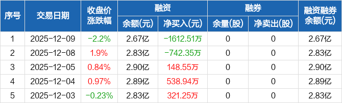祥源新材:融资净偿还1612.51万元,融资余额2.67亿元(12-09)