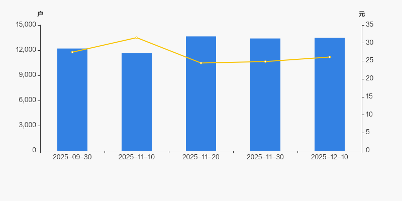 2025年9月30日至今,公司股东户数显著增长,区间涨幅为10.55%。2025年9月30日至2025年12月10日区间股价下降4.92%。