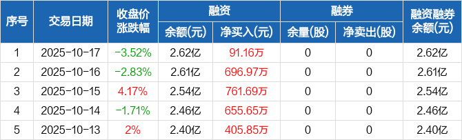 志特新材:连续5日融资净买入累计2611.31万元(10-17)