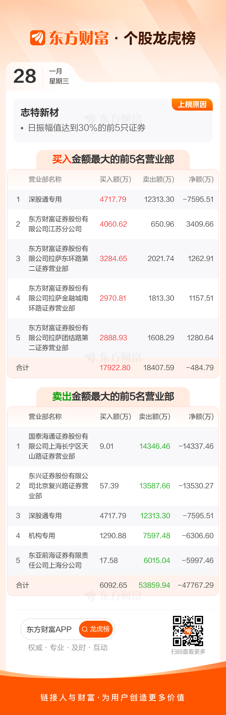 志特新材(300986)龙虎榜数据(01-28)