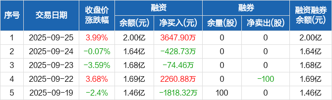 同飞股份:融资净买入3647.9万元,融资余额2亿元(09-25)