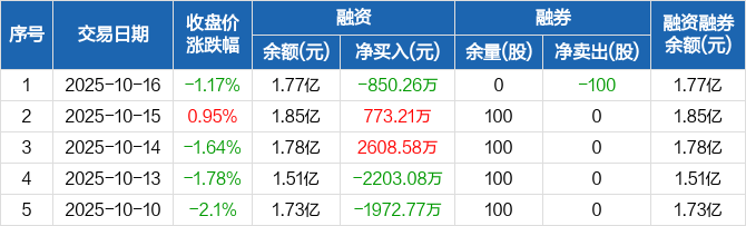 同飞股份:融资净偿还850.26万元,融资余额1.77亿元(10-16)